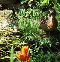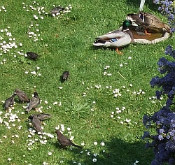 6th March - Mischief, Fun and Charity I was thinking since a while on how to bring our 'Mischief Activities' together with charity. One idea I already had with having 'day outs' for the race days of Race for Life. And now I stumbled across a local charity which might be worthwhile exploring. The Elisabeth Hospiz is doing great stuff although I think we will have to plan those activities carefully, as we don't want to burn our sponsor base by asking for money too often. However, check it out and let me know what you think! What else is new? Well, it truly is spring now! Our ducks are back. Last year a duck couple visited our pond. Due to cats they didn't seem to be keen on breeding, but they surely enjoyed the breakfast and in late spring the dinner as well. When I first saw them I couldn't believe my eyes! Our pond is a tiny goldfish and frog overstocked thing, and these guys are huge. They need about 3 strokes to get through the whole pond. However, they are proudly cruising it back and forth. Just to give you an idea of the proportions -