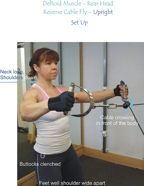 Cables are crossed in front of the body just after the fixing of the handles (A). Thus the arms form a nice bow as if you were about to hug somebody.